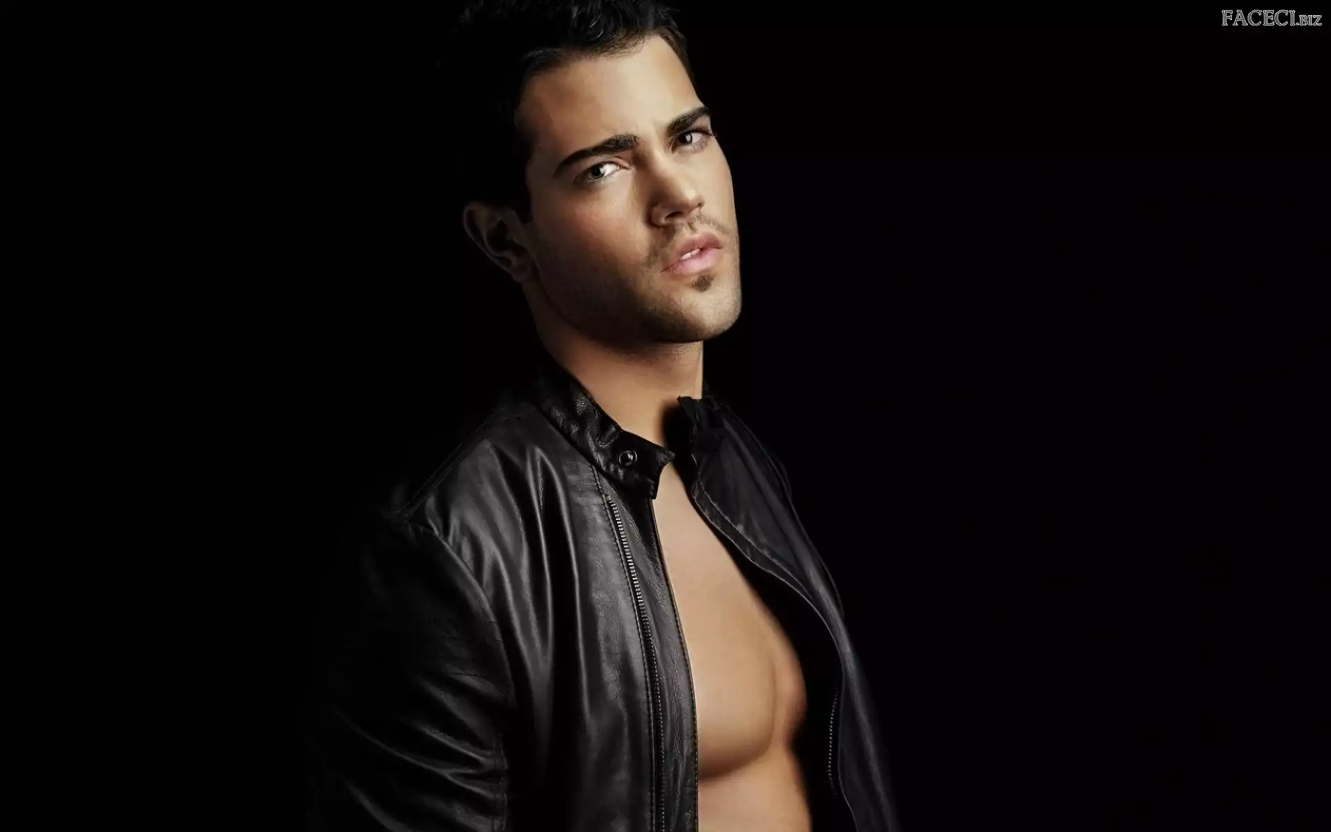 Kurtka, Czarna, Zarost, Przystojny, Brunet
